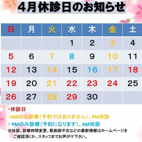 4月16日(木):AM休診(新潟市動物愛護センターにて、にゃんがたセンタークリニックとして多頭飼育猫手術のため)